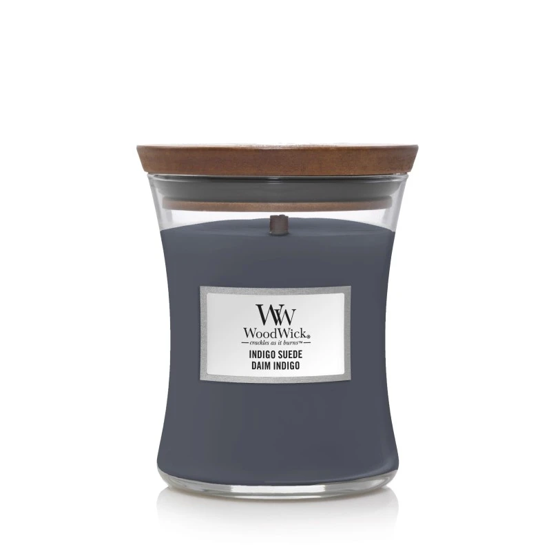 BOUGIE WOODWICK DAIM INDIGO MOYENNE JARRE
