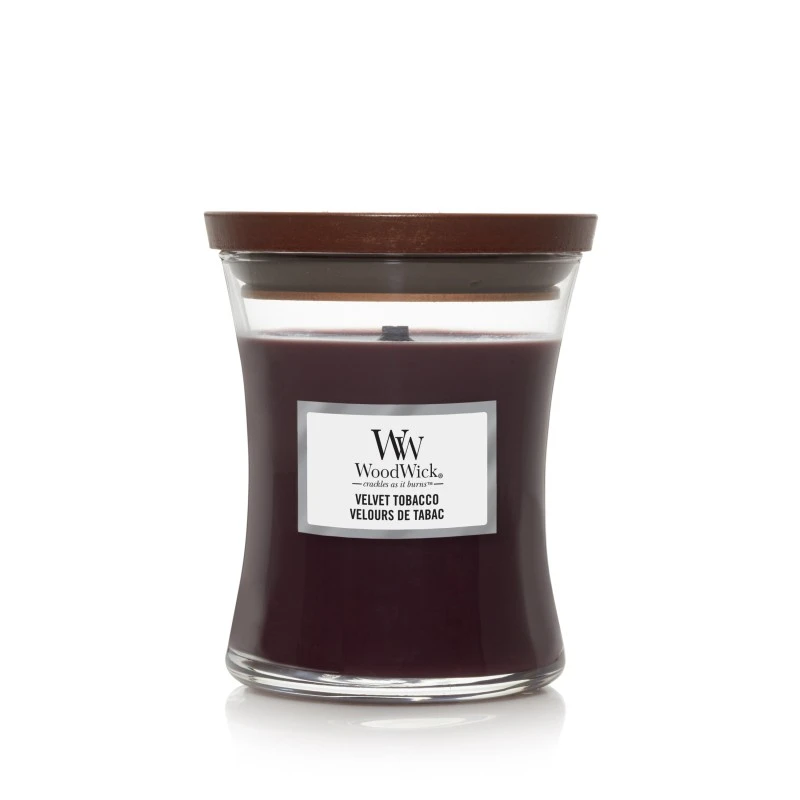 BOUGIE WOODWICK VELOURS DE TABAC MOYENNE JARRE